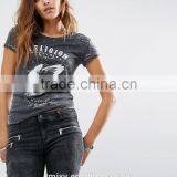 2016 new product custom t-shirt 50% Cotton 50% Polyester T-shirt for girls black skull print