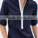new fashion slim fit wide open collar casual long sleeve women blouse wholesale