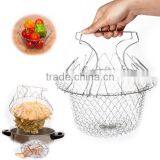 2016 New Arrival Hot Sale Foldable Steam Rinse Strain Fry Chef Basket Strainer Net Kitchen Cooking Too