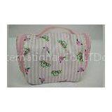 Peony Stripe Pink and White Background Color Ladies Cosmetic Bags for Women Travel