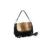 Ladies Black Rabbit Fur Handbags with Crystal Rivets and Suede Leather Fringes