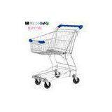 Small Wire Mesh Shopping Trolley Carts For Grocery Store , Blue Handle With Logo 60KGS