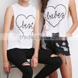 Unfinished Aarm Hole Cut Solid Color Cotton Best Babes Muscle Tee Set with Lovely Printing