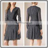 2015 Autumn Women Apparel Long Sleeve Chiffon Pleated A Line Long Sleeve Stretch Wear Black Dress NT6559