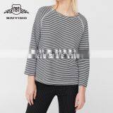 2017 Long Sleeve New Designs Wholesale Black White Cross Striped Women Cotton T-Shirt
