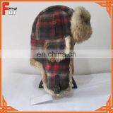 Wholesale Real Rabbit Fur Hat Earflap Trapper Hat Wool Plaid Winter Hat For Women
