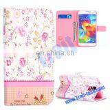 Fragrant Flowers Pattern with Rhinestone Inlaid Cross Texture Magnetic Stand TPU+PU Flip Leather Case for Samsung Galaxy S5 I960
