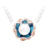 New 3D Beautiful Wholesale Jewelry Irregular Enemal Rhinestone Pearl Flower Shaped Pendant Long White Pearl Chian Necklace