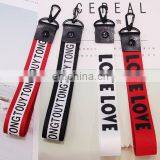 custom logo ribbon keychain phone charms fabric label logo charm hangers logo letter ribbon hangers garment accessories