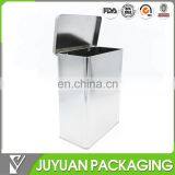 Plain silver metal storage container with hinged lid, large tin container food grade