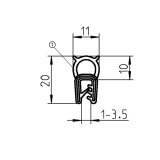 UL94 V0 Gaskets made of fire protection material foam rubber EPDM; clamping profile EPDM 60° ± 5 Shore A black 1011-05-FR01