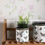 Unique artistic style butterfly pattern embossed design indoor flower planter archaistic white ceramic plants pots for garden