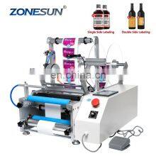 ZONESUN TB-190 Wine Double Side Sticker Round Water Semi Automatic Digital Bottle Labeling Machine For Plastic Bottle