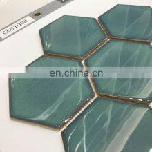 256x197mm High Glossy Green Color Hexagon Ceramic Mosaic Wall Mosaics Hot Melt Glass Mosaic Tiles From Foshan