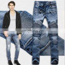 2020 Wholesale stock fashion Jeans High-grade denim wrinkled men biker skinny trousers Patchwork leather slim fit men jeans