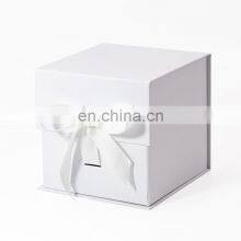 Bulk luxury magnetic closure lid white custom cube style rigid gift hamper box with ribbon