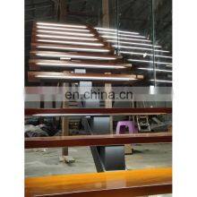 Project of stair straight stairs Interior staircase with Wood Tread and Glass Railing