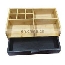 Bamboo Multi-Function Desktop Organizer; Store stationary items like notepads, file folders, paperclips, business cards, pens, &