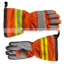 100% Flame Retardant Woven Fabric Canvas Fabric Sewn Heat Resistant Firefighter Fire Fighting Gloves with Reflective Tape