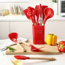 Home and Kitchen Gadgets Kitchen Wooden Handle Spatula Soup Spoon Brush Ladle Pasta Colander Non-stick Cookware Set