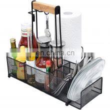 Grill utensil caddyBBQ and Picnic Caddy with Paper Towel Holder Plates, Cutlery and Condiment Bottles Organizer for Grill