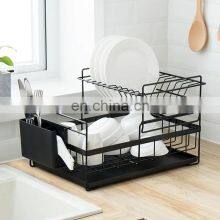 Cheap price iron wire tableware drain kitchen organizer multifunction dishes black storage rack