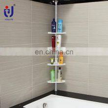 4 tier Anti-rust White Floating Bathroom Telescopic Corner Storage Shower Shelf For Towel