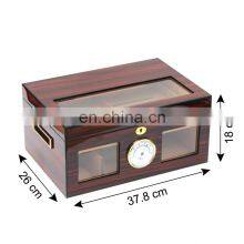 Stained Brown Desktop Lacquer surface large capacity 100ct Humidor Cigar Box with glass top For Cigar Storage