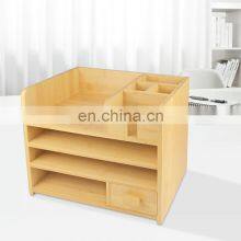 Makeup Organizer Bamboo Wood Vanity Countertop Organizer Cosmetic Jewelry Storage Tray with Drawers for Bathroom