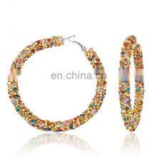 2022 6cm Big Gold Circle Shiny Rhinestone Diamond Women Hoop Earrings for Women 2021