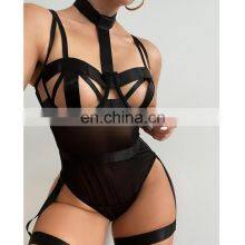 2022 Bodysuit Hollow out Sheer Lingerie Gothic Black Cross Bandage Sexy Lingeries Erotic