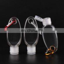 Hot Selling Oval Shape Empty 30ml 50ml 60ml Hand Sanitizer Bottle with Keychain Carabiner