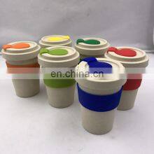 450ml Degradable Screw Lid Plastic Bamboo Fiber Mug with Silicone Band and Plug