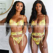 Lace See through Lingerie with Steel Ring Gathered Push up Bra Sexy Bra and Panties Sets