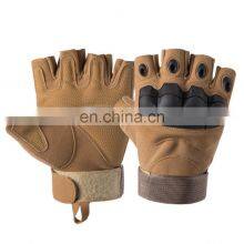 Factory Price Equipment Outdoor Hard Knuckle Sports Anti Impact Leather Hunting Fingerless Tactical gloves