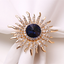 Sparkling Blue Artificial Crystal Diamond Sun Flower Rhinestones Napkin Rings Holders
