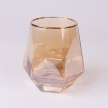 Creative Gold Plated Hexagonal Stemless Diamond Glass Cups Juice Water Wine Whiskey With Gold Rim