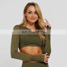 Women Yoga Set Gym Clothing Seamless Leggings Cropped Shirts Workout Sport Suit Women Long Sleeve Fitness Set Active Wear
