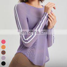 Breathable Quick Dry Gym Fitness Running Tshirt Sports Tops Long Sleeve Mesh Lightweight Yoga T-Shirt Blouse For Women