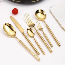 Polished Hammered Gold Silverware Set Heavy Tableware Cutlery Set With Knife Spoon and Fork
