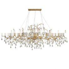 Large Modern Kitchen Island Brass and Copper Tree Branch Dining and Living Room Table with LED Light Source Custom Chandelier
