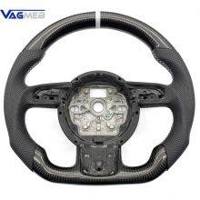 For Audi A6 C7 Perforated Leather Carbon Fiber White Stitching RS/S LOGO Steering Wheel Button Key Frame Assembly