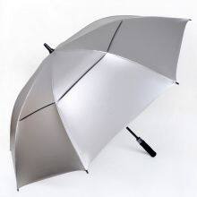 Long handled straight pole golf umbrella, super large double layered wind resistant and fully blackout PU titanium silver coating, sun protection and UV protection