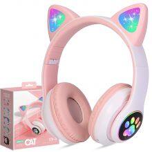 Folding LED Light Up Bluetooths Foldable Headphones Over Ear Cordless Headsets for Girl Kids Dynamic Wireless Cat Ear Headset