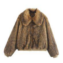 Fox yellow-brown natural color artificial fur coat, short style blouse with edgy girlish vibe