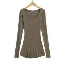 Solid colour design sense niche long-sleeved finger T-shirt feminine hot girl big U-neck light and thin micro-transparent undershirt top