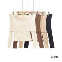 One-line collar off-the-shoulder long-sleeved T-shirt women's 2024 autumn and winter new vertical pit strip slim slim short undershirt top
