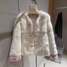 A new Chinese-style traditional Chinese coat and fur one-piece women's autumn and winter rabbit fur dress with a round neck and a light luxury style