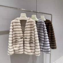 Eco-friendly mink fur coat for women, 2024 autumn and winter new imitation fur one-piece short and stylish V-neck coat for slimming